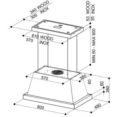 островная купольная вытяжка, количество скоростей: 3, производительность: 750 м3/ч, ширина встраивания: 80 см, электронное управление