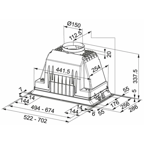 пристенная встраиваемая вытяжка, количество скоростей: 3, производительность: 580 м3/ч, ширина встраивания: 52 см