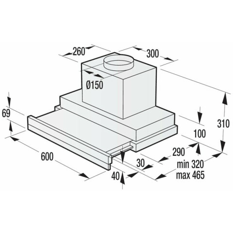 пристенная встраиваемая вытяжка, количество скоростей: 3, производительность: 720 м3/ч, ширина встраивания: 60 см, электронное управление, интенсивный режим, таймер