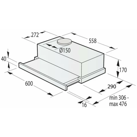 пристенная встраиваемая вытяжка, количество скоростей: 3, производительность: 350 м3/ч, ширина встраивания: 60 см, механическое управление