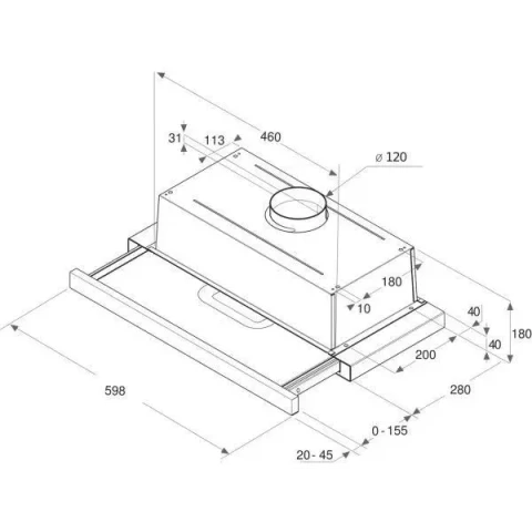 пристенная встраиваемая вытяжка, количество скоростей: 3, производительность: 384 м3/ч, ширина встраивания: 60 см, механическое управление
