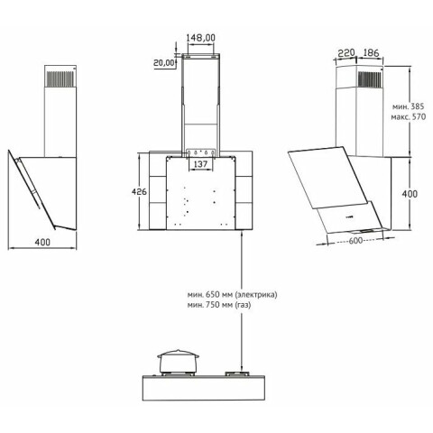 | пристенная наклонная вытяжка, количество скоростей: 3, производительность: 650 м<sup>3</sup>/ч, ширина встраивания: 60 см, электронное управление, периметриальное всасывание, таймер | Цена по запросу |
