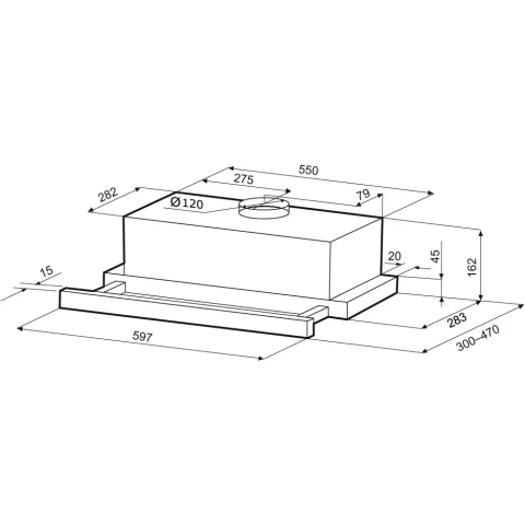 пристенная встраиваемая вытяжка, количество скоростей: 3, производительность: 500 м3/ч, ширина встраивания: 60 см, механическое управление