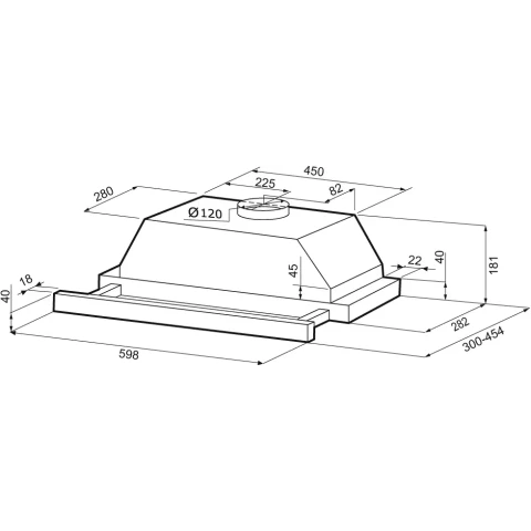 пристенная встраиваемая вытяжка, количество скоростей: 3, производительность: 500 м3/ч, ширина встраивания: 60 см, механическое управление