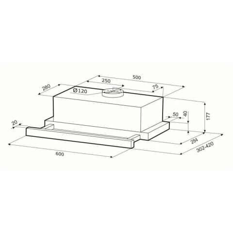 пристенная встраиваемая вытяжка, количество скоростей: 2, производительность: 405 м3/ч, ширина встраивания: 60 см, механическое управление
