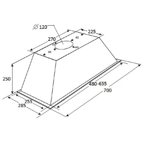 пристенная встраиваемая вытяжка, количество скоростей: 3, производительность: 650 м3/ч, ширина встраивания: 70 см, механическое управление