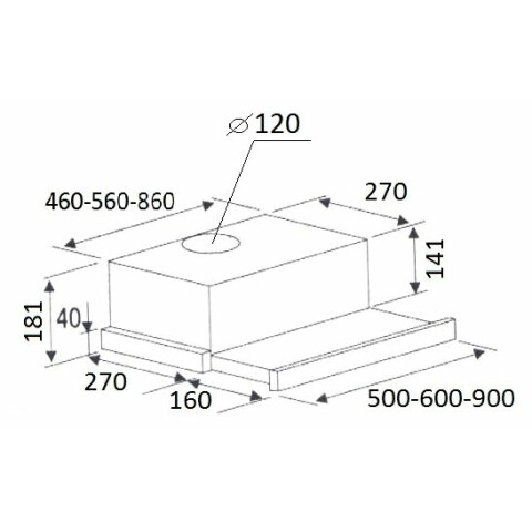 пристенная встраиваемая вытяжка, количество скоростей: 3, производительность: 550 м3/ч, ширина встраивания: 60 см, механическое управление