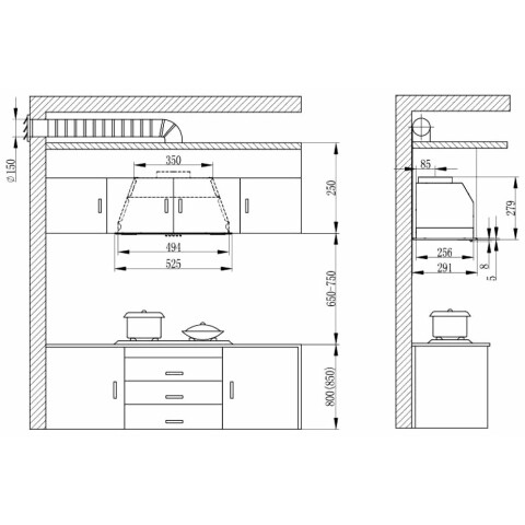 пристенная встраиваемая вытяжка, количество скоростей: 3, производительность: 1050 м3/ч, ширина встраивания: 60 см, механическое управление