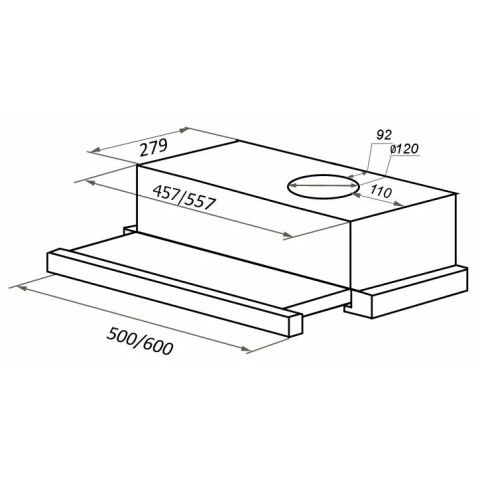 пристенная встраиваемая вытяжка, количество скоростей: 2, производительность: 530 м3/ч, ширина встраивания: 45.7 см, механическое управление