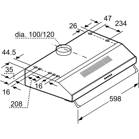 пристенная плоская вытяжка, количество скоростей: 3, производительность: 350 м3/ч, ширина встраивания: 60 см, механическое управление