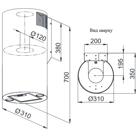 пристенная цилиндрическая вытяжка, количество скоростей: 3, производительность: 900 м3/ч, ширина встраивания: 31 см, механическое управление