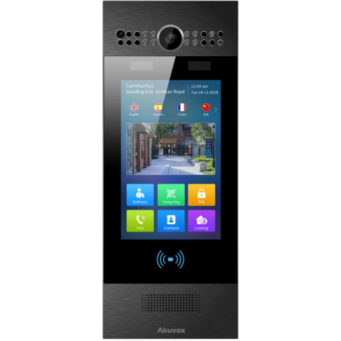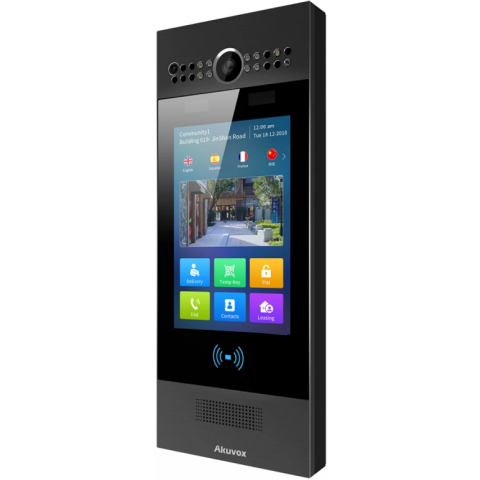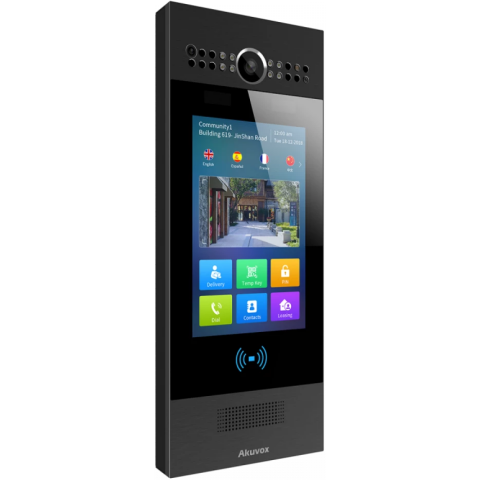 Бренд: Akuvoxинтеллектуальная многоабонентская IP вызывная панель с бесконтактным измерением температуры, 7" сенсорный цветной экран, поддержка РоЕ, IP65, IK06, врезной монтаж