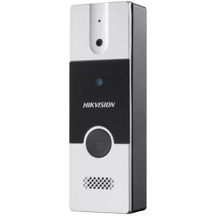 Бренд: Hikvisionаналоговая вызывная панель с 4-проводным интерфейсом, камера 720x576@25к/с, бесконтактный метод связи, адаптивная ИК-подсветка (с фоторезистором), всенаправленный динамик, 1 релейный выход, питание: DC 12 В, материал: алюминиевый сплав