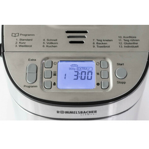 вес выпечки 900 г, выбор цвета корочки, таймер, замес теста, ускоренная выпечка, выпечка в форме буханки, 13 автоматических программ
