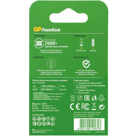 Зарядное устройство для аккумуляторов GP GPE21165AAAHC-2CRB2_0