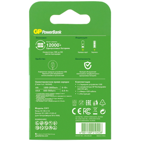 Зарядное устройство для аккумуляторов GP GPE411100AAAHC-2CRB4_0