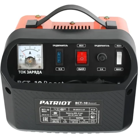 зарядное устройство для АКБ напряжением 12 В, пусковой ток: 6.5 А - 8.5 А, напряжение сети: 220 - 230 В, функции: защита от короткого замыкания