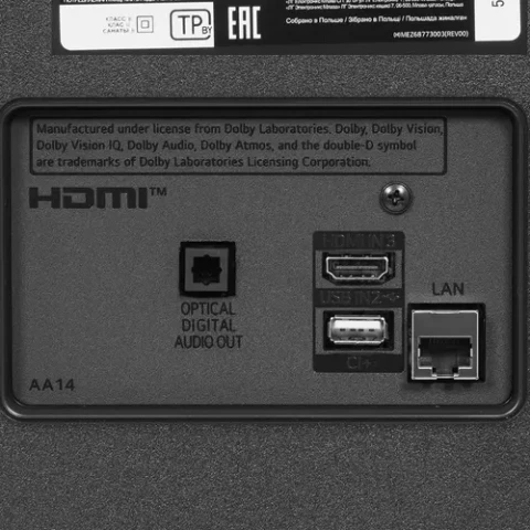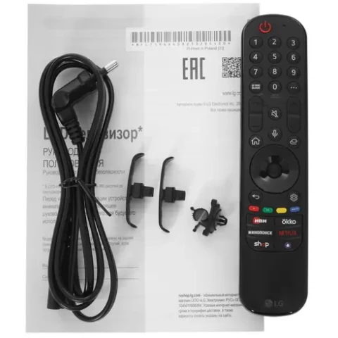 диагональ 55", разрешение 4K UHD (3840x2160), 60 Гц, HDR10, поддержка DVB-T2, Wi-Fi, Bluetooth, 3xHDMI, RJ-45, 2xUSB, Smart TV webOS